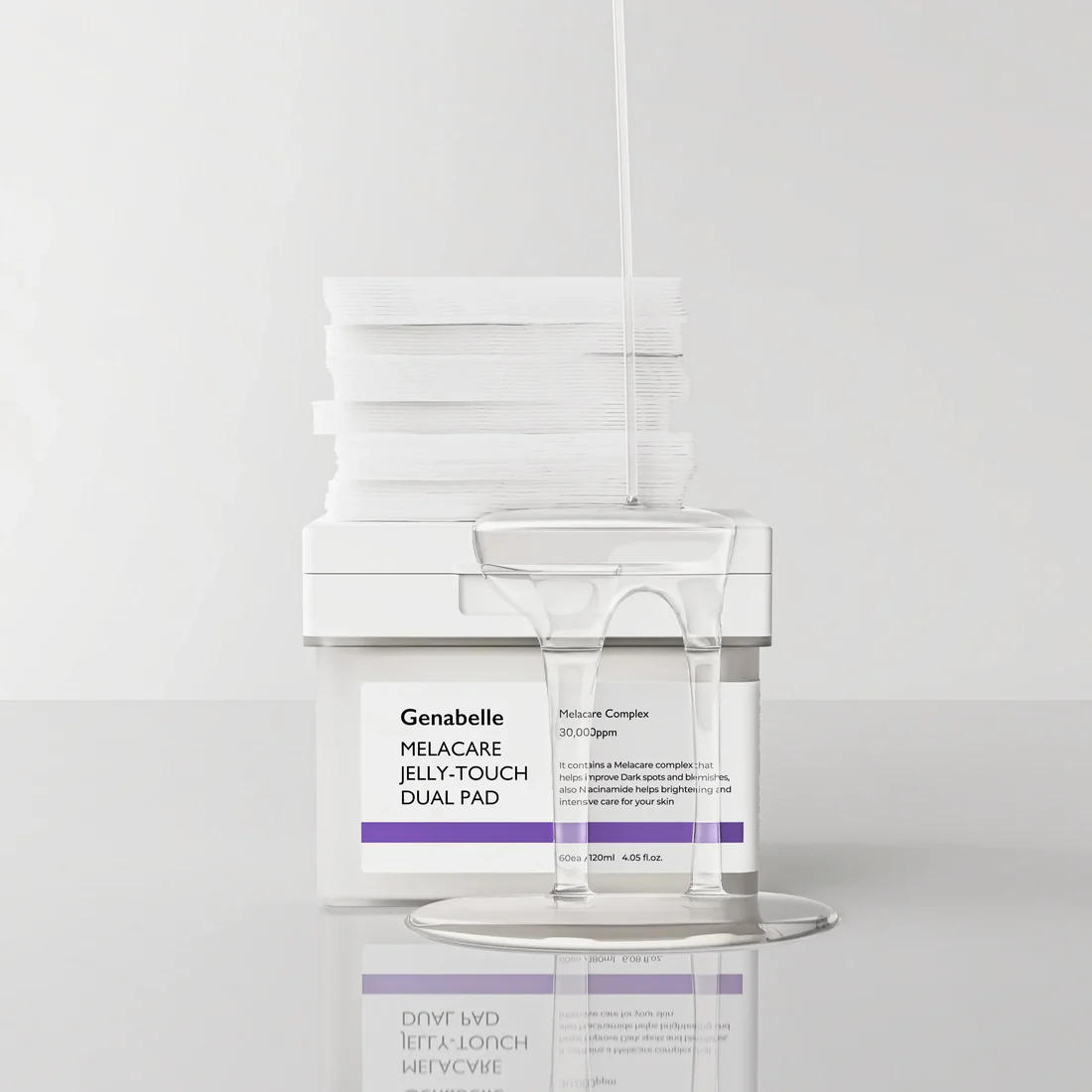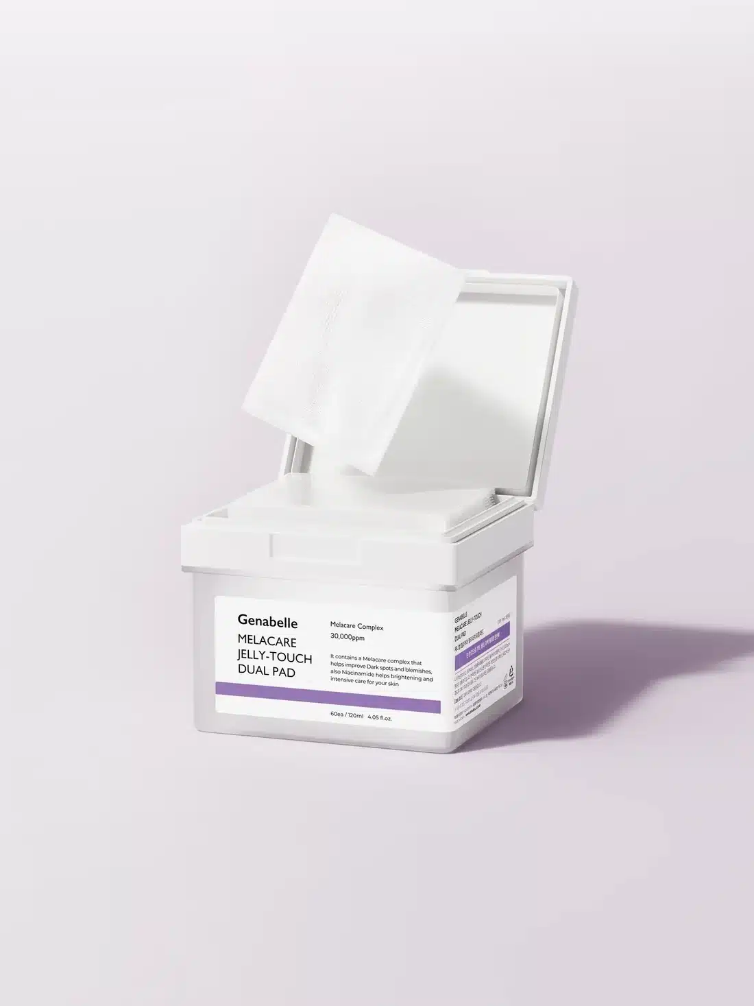Το μοναδικό σύμπλεγμα συστατικών Melacare 30.000ppm της Genabelle που είναι αποτελεσματικά στις φακίδες και τις ατέλειες. Ενισχύει τη συγκράτηση της υγρασίας με ένα υαλουρονικό οξύ 3 στρώσεων, αναγνωρισμένο ως πατενταρισμένη πρώτη ύλη. Διαθέτει δύο πλευρές,  μία πλευρά ζελατίνας για καταπραϋντική φροντίδα και μία πλευρά γάζας για απαλή απολέπιση. Επιπλέον, το Coptis Japonica Root Extract προσφέρει αντιφλεγμονώδη και αντιβακτηριδιακή δράση, βοηθώντας στην καταπράυνση από ερεθισμούς και κοκκινίλες.